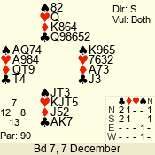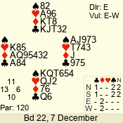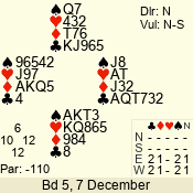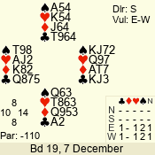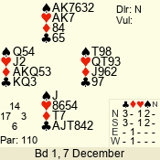 | Con | Dc | Res | Score | Ld | Pairs | Rd | Tbl | | 1 N | S | +1 | 120 | A | 08 - 10 | 10 | 8 |