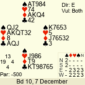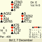 | Con | Dc | Res | Score | Ld | Pairs | Rd | Tbl | | 3 N x | E | -1 | 200 | 4 | 04 - 08 | 13 | 4 |