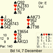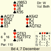 | Con | Dc | Res | Score | Ld | Pairs | Rd | Tbl | | 3 N | W | -3 | 150 | J | 02 - 10 | 13 | 2 |