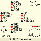 | Con | Dc | Res | Score | Ld | Pairs | Rd | Tbl | | 1 N | E | -1 | 50 | 2 | 07 - 08 | 11 | 7 |