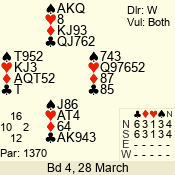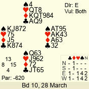 | Con | Dc | Res | Score | Ld | Pairs | Rd | Tbl | | 3 N | N | +3 | 690 | 3 | 05 - 08 | 2 | 5 |