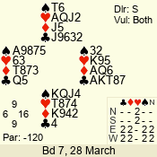| Con | Dc | Res | Score | Ld | Pairs | Rd | Tbl | 4  | E | -2 | 200 | 7 | 12 - 02 | 4 | 1 |