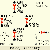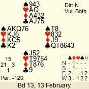 | Con | Dc | Res | Score | Ld | Pairs | Rd | Tbl | | | | 120 | | 02 - 04 | 11 | 2 |