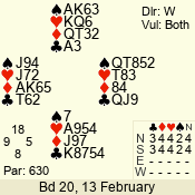 | Con | Dc | Res | Score | Ld | Pairs | Rd | Tbl | | | | 630 | | 12 - 03 | 10 | 12 |