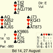 Tournaments: Cancer Society Pairs (2017) 27 August