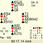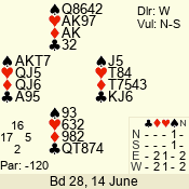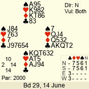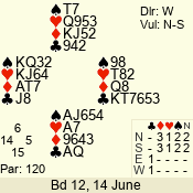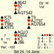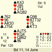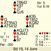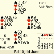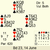 | Con | Dc | Res | Score | Ld | Pairs | Rd | Tbl | | 3 N | N | +2 | 660 | 9 | 12 - 08 | 6 | 12 |