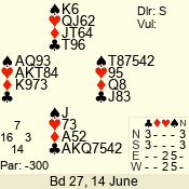 | Con | Dc | Res | Score | Ld | Pairs | Rd | Tbl | 5 x | S | = | 750 | J | 09 - 06 | 11 | 6 |