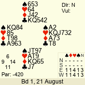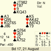 | 3 NT | S | +2 | 460 | 4 | 12 - 12 | 1 | 12 |