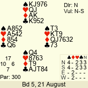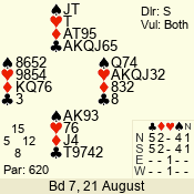 | 3 NT | S | +2 | 460 | 4 | 13 - 01 | 13 | 13 |