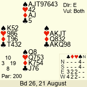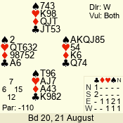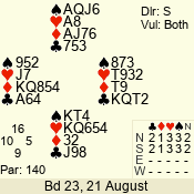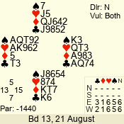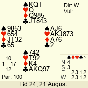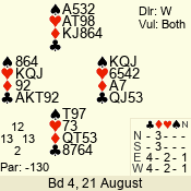 | 3 NT | S | +2 | 460 | 4 | 13 - 01 | 13 | 13 |