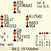 | Con | Dc | Res | Score | Ld | Pairs | Rd | Tbl | | ** | | 430 | | 02 - 02 | 1 | 2 |
