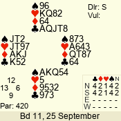 | Con | Dc | Res | Score | Ld | Pairs | Rd | Tbl | 5  | S | +1 | 420 | A | 02 - 04 | 7 | 2 |