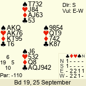 | Con | Dc | Res | Score | Ld | Pairs | Rd | Tbl | | 3 N | E | -3 | 300 | J | 03 - 07 | 5 | 3 |