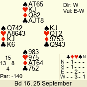 | Con | Dc | Res | Score | Ld | Pairs | Rd | Tbl | | 3 N | E | -3 | 300 | J | 03 - 07 | 5 | 3 |