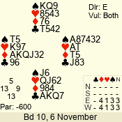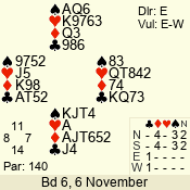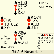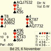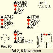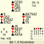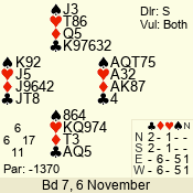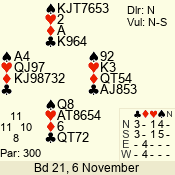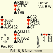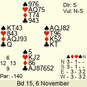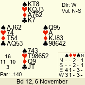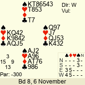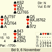 | Con | Dc | Res | Score | Ld | Pairs | Rd | Tbl | | 3 N | N | +2 | 460 | 4 | 05 - 05 | 12 | 5 |