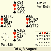 | Con | Dc | Res | Score | Ld | Pairs | Rd | Tbl | 4  | S | = | 620 | 8 | 01 - 02 | 6 | 3 |