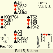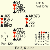 | Con | Dc | Res | Score | Ld | Pairs | Rd | Tbl | | 3 N | S | = | 600 | A | 03 - 06 | 7 | 3 |
