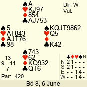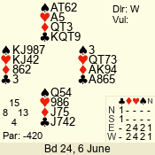 | Con | Dc | Res | Score | Ld | Pairs | Rd | Tbl | 4  | S | = | 420 | 2 | 01 - 03 | 8 | 1 |