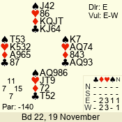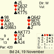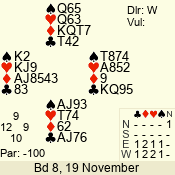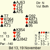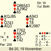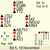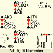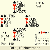 | Con | Dc | Res | Score | Ld | Pairs | Rd | Tbl | | 1 N | W | -3 | 300 | Q | 06 - 09 | 8 | 6 |