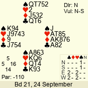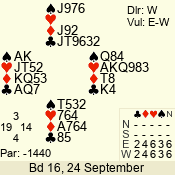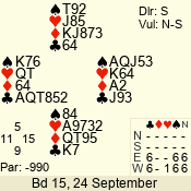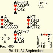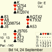 | 3 NT | W | +2 | -460 | 4 | 14 - 01 | 1 | 1 |