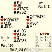 | 3 NT | E | +2 | -460 | 6 | 01 - 10 | 12 | 5 |