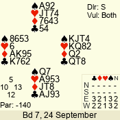 | 3 NT | E | +1 | -430 | 7 | 03 - 06 | 7 | 3 |