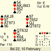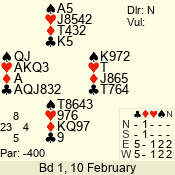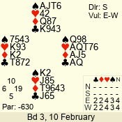 | Con | Dc | Res | Score | Ld | Pairs | Rd | Tbl | | 3 N | E | -1 | 100 | 7 | 06 - 07 | 11 | 3 |