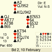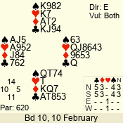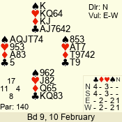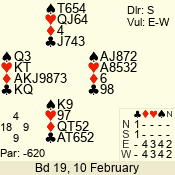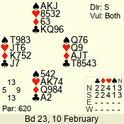 | Con | Dc | Res | Score | Ld | Pairs | Rd | Tbl | | 3 N | E | -3 | 300 | K | 14 - 10 | 10 | 4 |