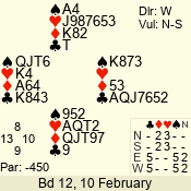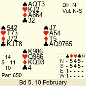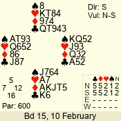 | Con | Dc | Res | Score | Ld | Pairs | Rd | Tbl | | 3 N | N | = | 600 | 5 | 12 - 01 | 11 | 2 |