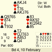 | Con | Dc | Res | Score | Ld | Pairs | Rd | Tbl | | 3 N | N | = | 600 | 6 | 14 - 02 | 2 | 4 |