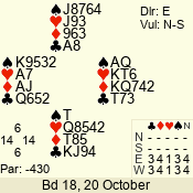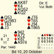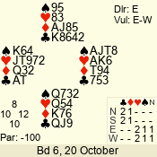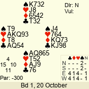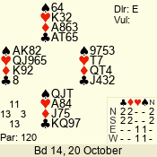 | 3 NT | E | +1 | -630 | J | 06 - 14 | 8 | 6 |