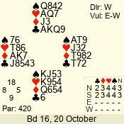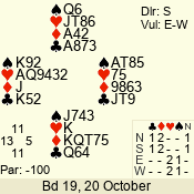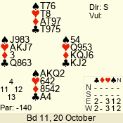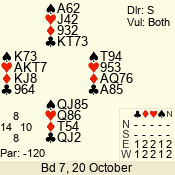 | 3 NT | S | +1 | 630 | A | 07 - 13 | 10 | 7 |
