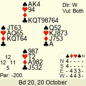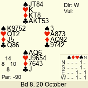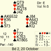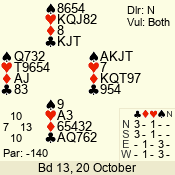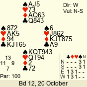 | 3 NT | W | +1 | -630 | 8 | 13 - 13 | 1 | 13 |