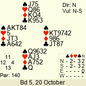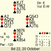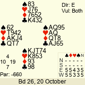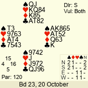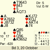 | 3 NT | W | +2 | -660 | 7 | 15 - 15 | 1 | 15 |
