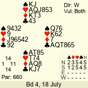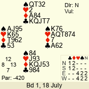 | 3 NT | S | +1 | 430 | 3 | 07 - 01 | 7 | 7 |