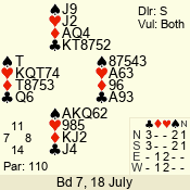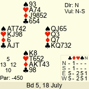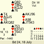 | 3 NT | S | +1 | 430 | 3 | 07 - 01 | 7 | 7 |