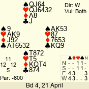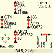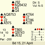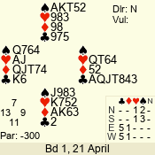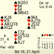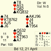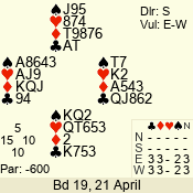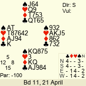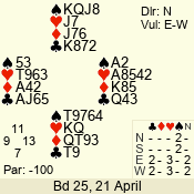| 3 NT | W | +2 | -460 | A | 01 - 01 | 1 | 1 |