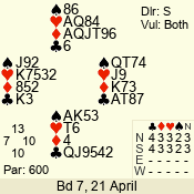 | 3 NT | S | +1 | 430 | 4 | 05 - 08 | 7 | 5 |