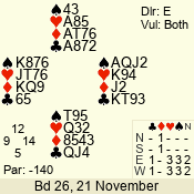 | 3 NT | W | +1 | -430 | 4 | 05 - 11 | 8 | 5 |