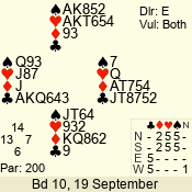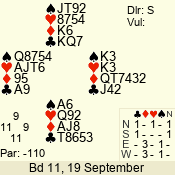 | Con | Dc | Res | Score | Ld | Pairs | Rd | Tbl | | 3 N | N | -2 | -200 | 3 | 10 - 05 | 7 | 3 |