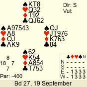 | Con | Dc | Res | Score | Ld | Pairs | Rd | Tbl | 4  | S | = | 420 | 9 | 04 - 09 | 3 | 4 |