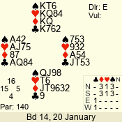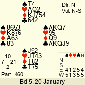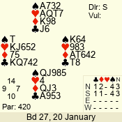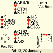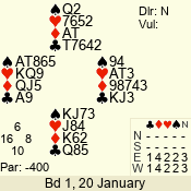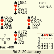 | Con | Dc | Res | Score | Ld | Pairs | Rd | Tbl | | 3 N | N | = | 400 | 7 | 07 - 02 | 6 | 7 |