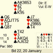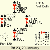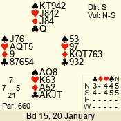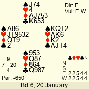 | Con | Dc | Res | Score | Ld | Pairs | Rd | Tbl | 4  | S | +1 | 450 | 7 | 03 - 06 | 7 | 3 |
