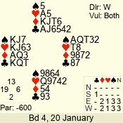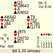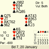 | Con | Dc | Res | Score | Ld | Pairs | Rd | Tbl | | 3 N | S | = | 600 | 5 | 02 - 05 | 7 | 2 |