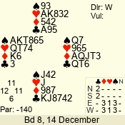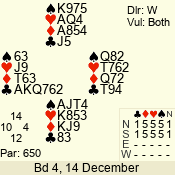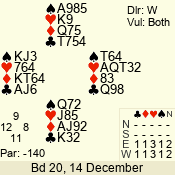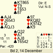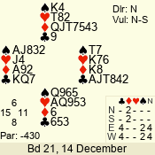 | Con | Dc | Res | Score | Ld | Pairs | Rd | Tbl | | ** | | 420 | | 13 - 14 | 15 | 13 |