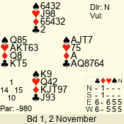 | Con | Dc | Res | Score | Ld | Pairs | Rd | Tbl | | 6 N | E | -1 | 50 | T | 04 - 04 | 1 | 4 |