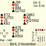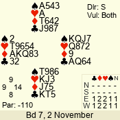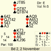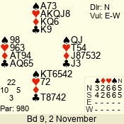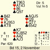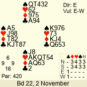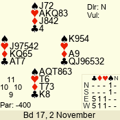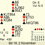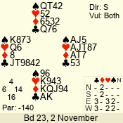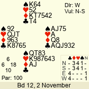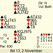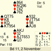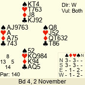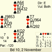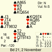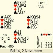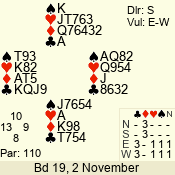 | Con | Dc | Res | Score | Ld | Pairs | Rd | Tbl | | 4 N | W | -4 | 400 | K | 02 - 02 | 1 | 2 |