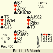 | Con | Dc | Res | Score | Ld | Pairs | Rd | Tbl | | 3 N | N | +1 | 430 | T | 04 - 07 | 7 | 4 |