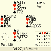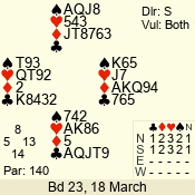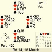 | Con | Dc | Res | Score | Ld | Pairs | Rd | Tbl | | 1 N | S | +1 | 120 | 6 | 08 - 05 | 4 | 8 |