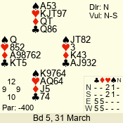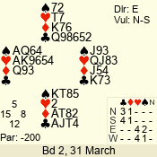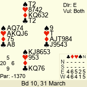 | 3 NT | E | +1 | -630 | 5 | 05 - 12 | 7 | 2 |